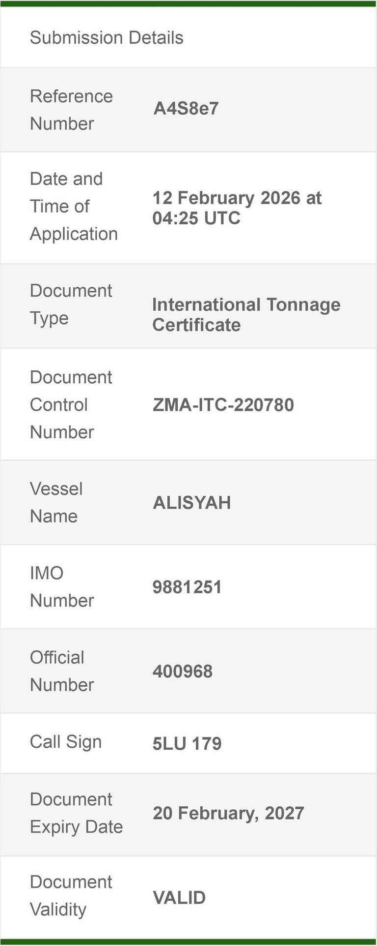 We have successfully checked the authenticity of the document submitted and can confirm it matches our records. The validity of the document is listed below.